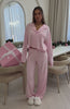 Breeze into the night before Christmas with our Bedtime Bliss Pyjama Set in Soft Pink! The long-sleeve top features a classic collared neckline with button‑front styling, a relaxed silhouette for maximum ease, and a embroiered graphic across the front pocket for a cute finishing touch. The matching pants offer a thick, elasticated waistband and wide-leg cut for effortless movement all night long. We are obsessed!