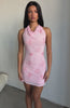Meet Between The Lines Mini Dress Pink, the summer mini you’ll be reaching for on repeat. It features a halter strap buttoned at the nape, a soft cowl neckline, and an fitted bodice that flows beautifully into a relaxed skirt. Backless with self‑tie straps, fully lined in high‑stretch fabric, and detailed with delicate floral beading to elevate the look. Style with kitten heels and layered gold jewellery for a look we love.