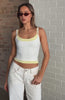 Loving the layered look! The Breaking Loose Tank Top in White/Lemon features double-thin adjustable straps, a faux layered scoop neckline, and a high-stretch, unlined fabrication for a flattering, breathable fit. Style it effortlessly with your favourite jeans and sandals for a laid-back, fresh fit.