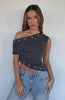 Can't Look Back Off Shoulder Top Dark Grey Marle