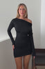 +64 loyalty pointsServe fierce vibes in the Close To You Long Sleeve Mini Dress in Black. It features a jewel neckline, flared long sleeves, and a fitted waist that gently cinches the bodice. Ruched side detailing at skirt adds a flattering twist, while the high-stretch fabrication ensures comfort. Style it with kitten heels, simple gold jewellery and a statement bag for a striking night-out look.