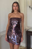 +99 loyalty pointsSoon to be all over your feed...the Disco Darling Sequin Mini Dress Plum is the ultimate show stopper. Featuring a strapless design with gel grip at bust, mesh-lined material, mini length, stretch material for an easy slip-on design, and paillette sequin embellished material for a high shine finish! Complete the look with your favourite mules and silver jewellery.