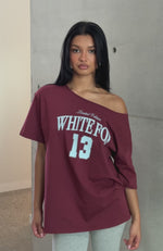 Everything In Time Off Shoulder Oversized Tee Burgundy