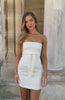+69 loyalty pointsAll i want for Christmas is the Gilded Nights Strapless Mini Dress White! Features a strapless neckline with internal grip-tape, an under-bust seam and a bold centre-front bow that adds instant drama. The fitted silhouette hugs your curves, while the side zipper with hook-and-eye closure and full lining ensures a flawless finish. This dress pairs perfectly with sky-high heels and layered gold jewellery for a festive, polished look.