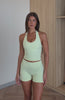 Matcha run fit! The Grit Seamless Active Tank in Sorbet features halter neck design, built in bra with removable padding for a supportive fit, unlined, stretch material that moves with your body, and open back design. Pair with the matching bottoms in Sorbet for your next sweat sesh look!