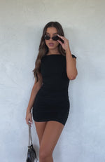 +41 loyalty pointsYou’ll always be having a good time in the Hold Me Closer Mini Dress in Black. Featuring short sleeves, backless design, ruched side detail and thick, lined stretch jersey fabric. We love this paired with a cute mini bag and knee-high boots for a look we love!