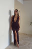 Create a jaw dropping entrance in the Keep Me Close Maxi Dress in Chocolate! Features a halter neckline, low plunge, ruching detailing, front leg split, backless and lined. Complete the look with a clear heel, gold accessories and shoulder bag for a look we can't get enough of!