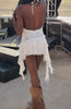 +89 loyalty pointsCoachella core. The Let’s Roll Mini Dress in Off White features self‑tie halter straps and a cowl neckline. A low back and back zipper with hook‑and‑eye closure keep the silhouette sleek, while full lining ensures comfortable wear. Finishing with a tiered hem and sash detailing. Style with statement cowboy boots to capture that free‑spirited desert energy.