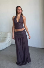 Mad At You Maxi Skirt Choc/Pink Polka Dot