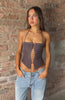 It's all in the details! The Make You My Lover Bustier in Chocolate features thin halter neck straps with self tie closure at back, square neckline with eyelet detailing, corsetry inspired lace up design centre front, paneling to structure the waist and back invisible zipper and clasp closure. Get girls night ready by pairing with jeans and heels!