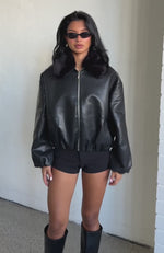 Exude boss girl energy in the No Competition Pu Bomber Jacket in Black! Features a fur collar neckline, slouched shoulders, long sleeves with elasticated cuffs, zipper closure centre front, side pockets, and elasticated hemline for a cinched waist. All eyes are on you when styled with mini shorts, boots, and sunnies for a cool concert fit.