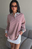 Out Again Long Sleeve Rugby Shirt Dark Grey Marle/Burgundy Stripe