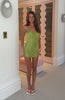 Let your outfit outshine the sunset sky. The Reckless Glamour Fringe Mini Dress Chartreuse features halter straps, a draped cowl neckline, shimmering fringe detailing, a daring mesh-side panel, and a backless mini silhouette that’s fully lined. Pair with statement heels and layered gold jewellery for a statement look.