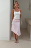 The Sending My Love Asymmetric Midi Skirt in Pink is the perfect mix of feminine charm and free‑spirited style. A delicate elastic waistband ensures comfort, while the draped fabric and silver‑tone hardware add subtle sophistication. Finished with a asymmetric hemline and the stretchy fabrication that adapts beautifully to your silhouette. Style with a basic tank and kitten heels for equal parts effortless and elevated.