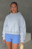 Feeling like sporty spice? The Serving Up Cropped Hoodie Baby Blue features an oversized fit with drop shoulders, hooded design, ribbed cuffs and hem, cropped fit and print logo detailing side front and back. Pair with lounge shorts and sneakers for a cute weekend casual vibe.