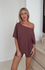 Slow Life Off Shoulder Oversized Pyjama Tee Chocolate