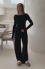 +79 loyalty pointsPyjama glam is a thing … meet the Softly Slumbering Pyjama Set in Black! The long-sleeve top features a jewel neckline and gentle ruching at the sides, crafted from an unlined, high-stretch fabric. The matching pants offer a thick elastic waistband, wide-leg silhouette, convenient side pockets and also in that same high-stretch material. Slip into your go-to slippers, pop on a sheet mask, and you’ve nailed the perfect cosy night-in look.