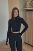 My kind of addiction. The Stride Seamless Zip Long Sleeve in Black features a high neckline, long sleeves with a quarter‑zip center front, high‑stretch seamless fabrication, an unlined design, and a cropped silhouette. Style with the matching bottoms in Black to take on any exercise.