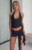 +59 loyalty pointsSoak up the sun in the Sunset Soiree Halter Top in Black! Features thick self-tie halter straps, a plunging neckline, and a side-attached ruffle sash that adds a touch of drama. The backless design and lined finish ensure comfort. Pair it with the Dunes And Dreams Shorts Black for a stunning dinner ensemble.