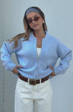+84 loyalty pointsKeep the cold out in style. The Unbreakable Bond Knit Jacket in Baby Blue features a classic crew neckline, relaxed slouch shoulders, and long sleeves finished with ribbed cuffs, this unlined knit offers gentle warmth and effortless elegance. The front zipper closure makes it easy to layer, making it your go‑to piece for breezy days. Style with your fav denim jeans, sunnies and layered gold jewellery for an effortless fit!