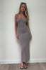 Indulge in simplicity. The We Can Work It Out Ribbed Maxi Dress Taupe features thin shoulder straps, a hugging fit, maxi length, backless and ribbed, stretch material for an easy slip on design. Dress it up with a pair of kitten heels and a mini bag, or opt for a more casual look with platform slides.
